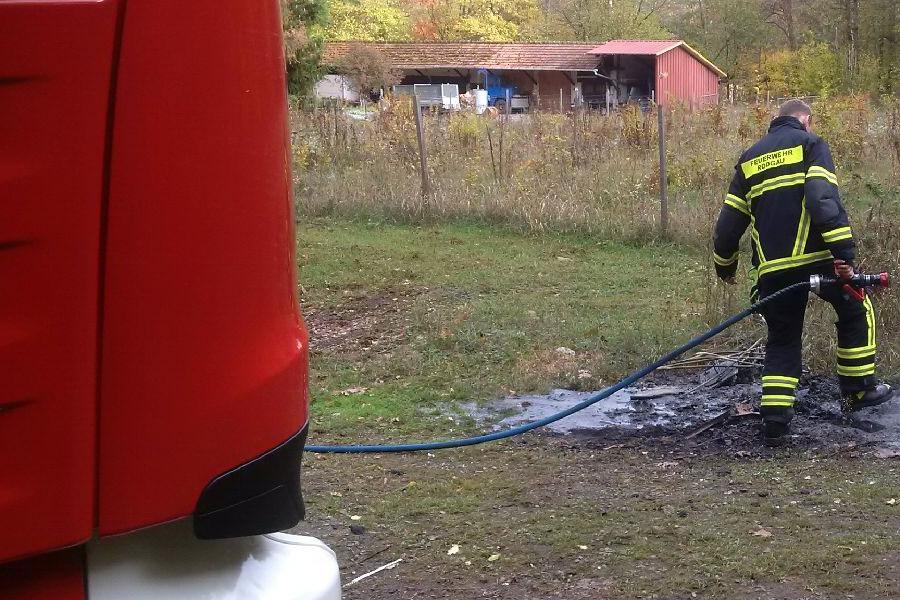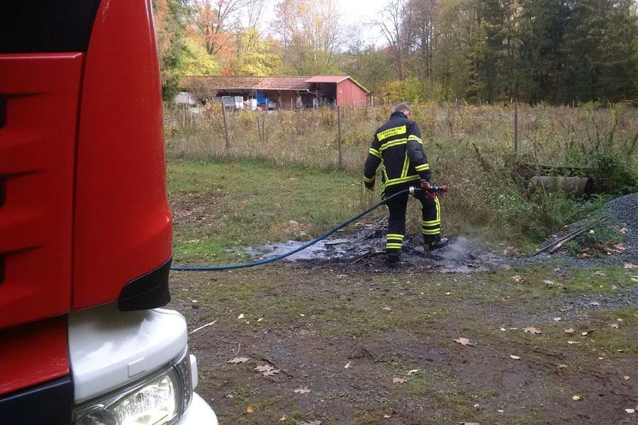 Im Wald brannten ca. 6qm Unterholz, dies wurde gelöscht.