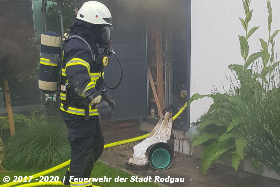 Die Feuerwehr wurde zu einem Garagenbrand alarmiert. Im Inneren brannten verschiedene Gegenstände, die Einsatzkräfte drangen unter Atemschutz über eine Seitentür ein und löschten das Feuer. Durch das Öffnen des Garagentor konnte der Rauch abziehen, abschließend wurde alles mit der Wärmebildkamera kontrolliert.