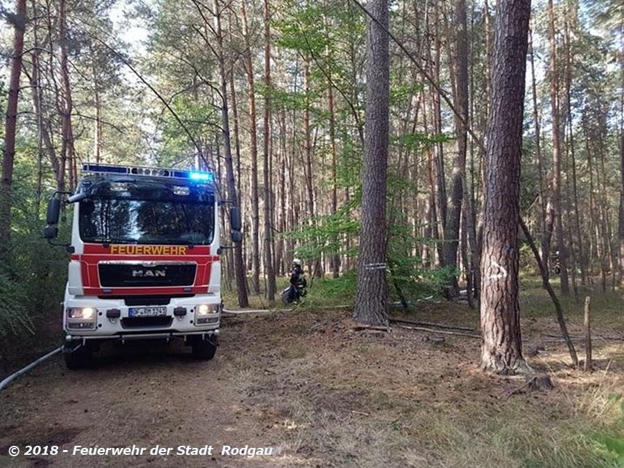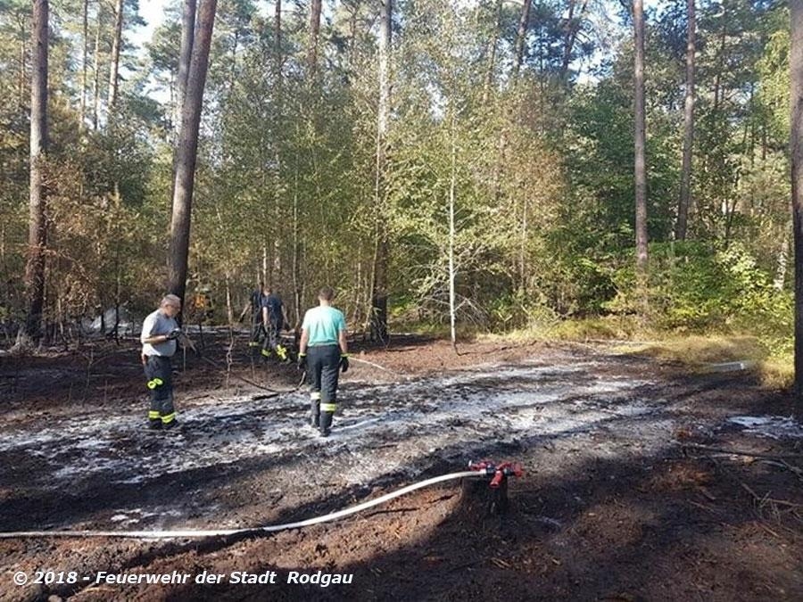 Zu einem Waldbrand musste die Feuerwehr Rodgau am Dienstag in dem Bereich der "Grundseeschneise" an der B 45 ausrücken. Im Wald brannte eine etwa 1000 Quadratmeter große Fläche. Aufgrund der großen Trockenheit breitet sich das Feuer auf rund 1500 Quadratmeter aus.