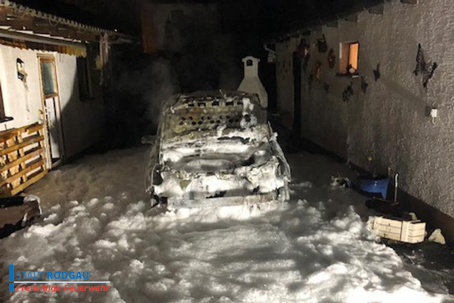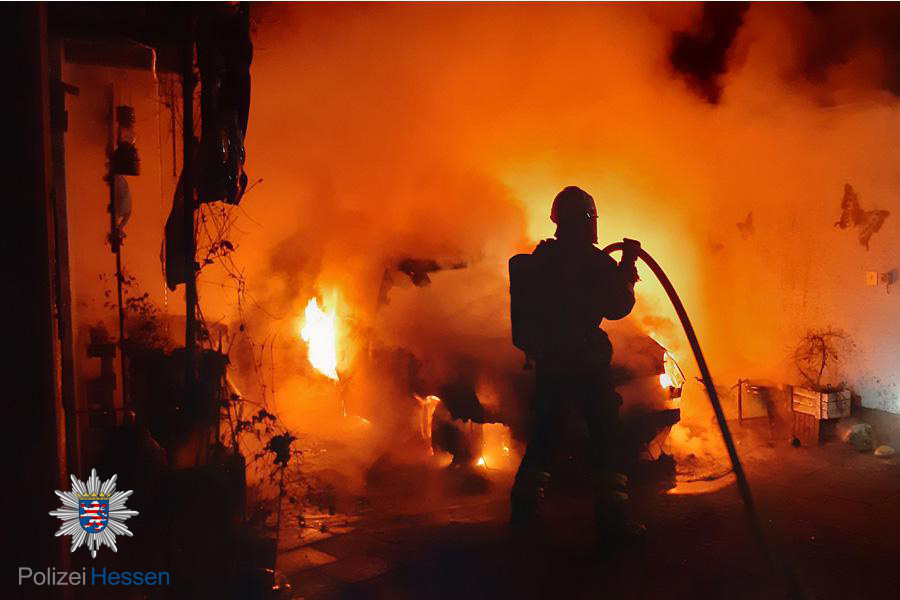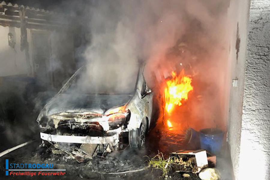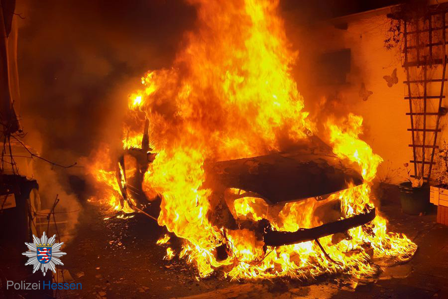 Es brannte ein PKW im Hinterhof, dieser wurde durch die Freiwillige Feuerwehr Rodgau Mitte gelöscht.
